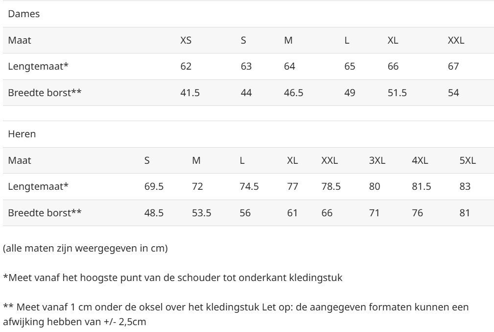 - Beschikbaar in verschillende maten (XS/3XL + Kids)